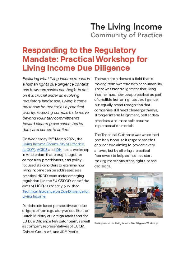 The Technical Guidance on Due Diligence for Living Income provides a practical and comprehensive framework that supports agribusiness companies in implementing HRDD for living income in line with the UNGPs.